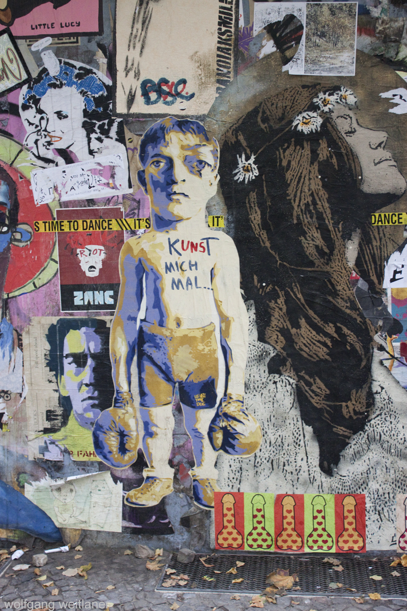 Berln ist die Hauptstadt der StreetArt Szene Europas. Alle Künstler mit Rang und Namen haben sich hier verewigt. Ein Beispiel ist das bunte Bild an der Fassade eines Kinos in Friedrichshain – verschiedene Künstler mit verschiedenen Techniken schaffen ein ständig wechselndes Kunstwerk, dessen Abbild sich binnen weniger Wochen verändert. Auch das ist ein Merkmal dieser Kunstwerke.
