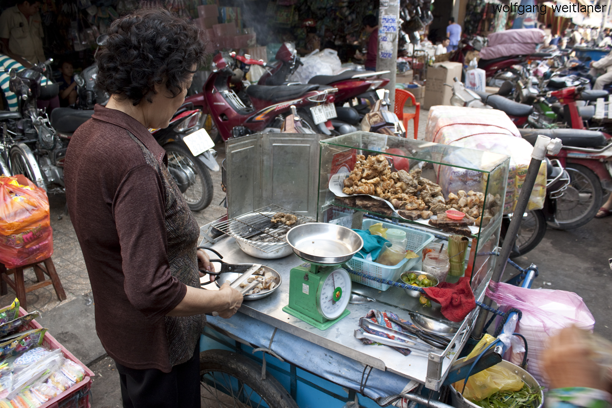 Es ist wirklich erstaunlich, wie wenig Platz man braucht, um eine fahrbare Küche perfekt zu betreiben. Um das am besten zu dokumentieren, habe ich drei verschiedene Fotos aus meinem Vietnam-Album heraus gesucht. Vorbereitung und Organisation sind dabei wohl das A und O dieser unfassbar tollen beweglichen Foodstalls. Und das beherrschen die überaus freundlichen und liebevollen Vietnamesen aus dem Effeff. Sie sind Meister des Zauberns – und das gilt ganz besonders im kulinarischen Bereich. Denn alles das, was man hier zu essen bekommt, schmeckt auch noch hervorragend. Das große Geheimnis ist natürlich die Frische der Kräuter, denn diese spielen bei nahezu allen Köstlichkeiten dieses Landes eine entscheidende Rolle.