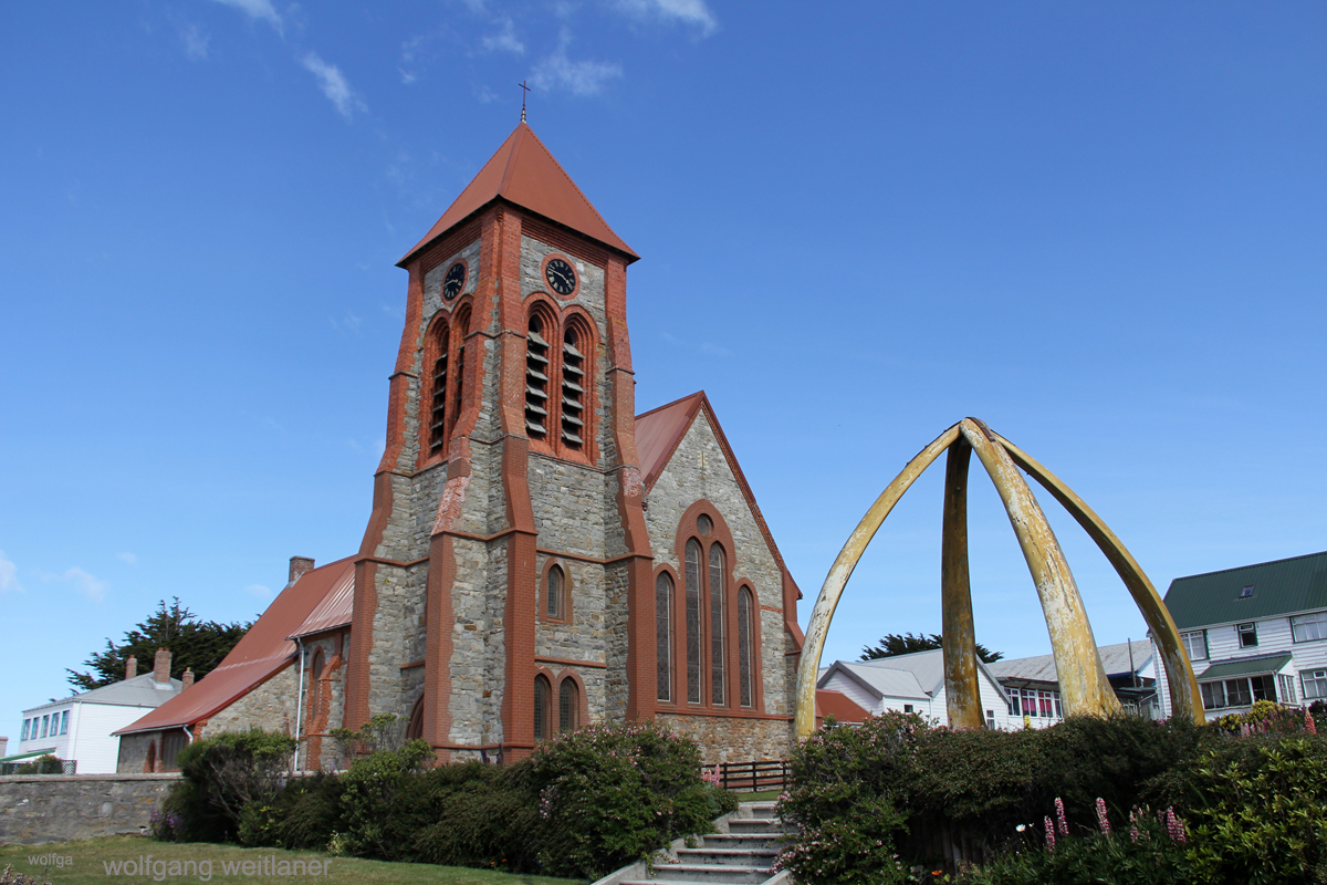 Die Christ Church Cathedral in Stanley ist die südlichste anglikanische Kirche der Welt. Sie wurde 1892 vollendet und ist das Zentrum des Bistums Falkland-Inseln/Südgeorgien und British Antarctic Territory. Vor der Kathedrale befindet sich der Whalebone-Arch – aus den Kiefern zweier Blauwale. Dieses Monument wurde 1933 errichtet und erinnert an den 100. Jahrestag der britischen Herrschaft über die Inseln.
